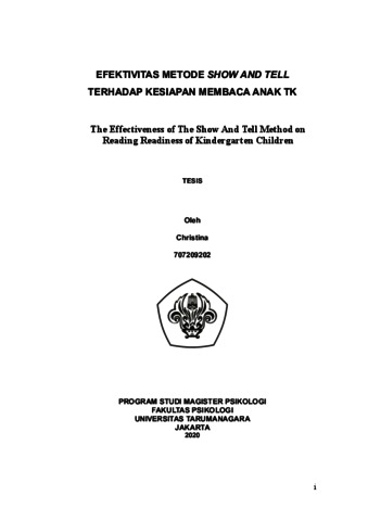 Christina, Christina (2022) EFEKTIVITAS METODE SHOW AND TELL TERHADAP KESIAPAN MEMBACA ANAK TK. Masters thesis, Universitas Tarumanagara.