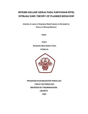 Titiani, Skolastika Meta Wedika (2022) INTENSI KELUAR KERJA PADA KARYAWAN RITEL DITINJAU DARI THEORY OF PLANNED BEHAVIOR. Masters thesis, Universitas Tarumanagara.