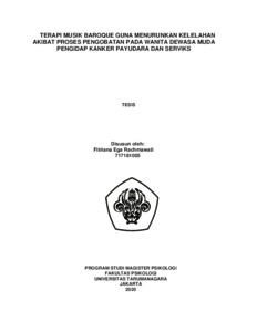 Rachmawati,, Fitriana Ega (2022) Terapi Musik Baroque Guna Menurunkan Kelelahan Akibat Proses Pengobatan pada Wanita Dewasa Muda Pengidap Kanker Payudara dan Serviks. Masters thesis, Universitas Tarumanagara.