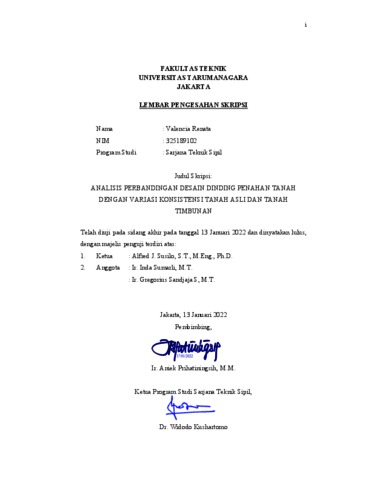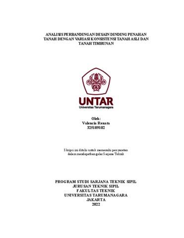 Renata, Valencia (2022) Analisis perbandingan desain dinding penahan tanah dengan variasi konsistensi tanah asli dan tanah timbunan. Skripsi thesis, Universitas Tarumanagara.