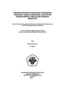 Hermawan, Hilmma (2022) Peran Persepsi Dukungan Organisasi terhadap Kinerja Individual Karyawan dengan Modal Psikologis sebagai Mediator. Masters thesis, Universitas Tarumanagara.