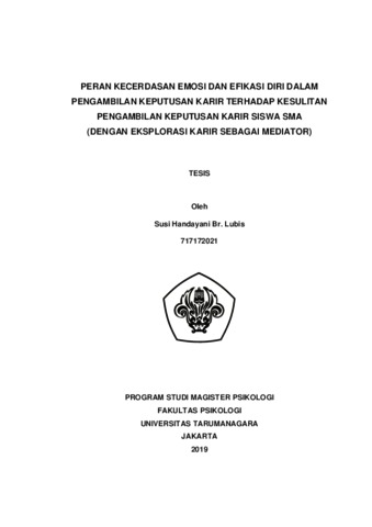 Lubis, Susi Handayani Br. (2022) PERAN KECERDASAN EMOSI DAN EFIKASI DIRI DALAM PENGAMBILAN KEPUTUSAN KARIR TERHADAP KESULITAN PENGAMBILAN KEPUTUSAN KARIR SISWA SMA (DENGAN EKSPLORASI KARIR SEBAGAI MEDIATOR). Masters thesis, Universitas Tarumanagara.
