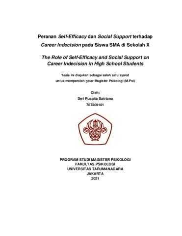 Satriana, Dwi Puspita (2022) Peranan Self-Efficacy dan Social Support terhadap Career indecision pada Siswa SMA di Sekolah X. Masters thesis, Universitas Tarumanagara.