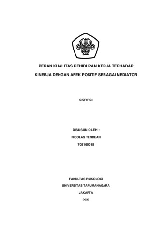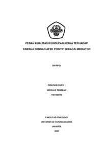 Tendean, Nicolas (2022) PERAN KUALITAS KEHIDUPAN KERJA TERHADAP KINERJA DENGAN AFEK POSITIF SEBAGAI MEDIATOR. Skripsi thesis, Universitas Tarumanagara.