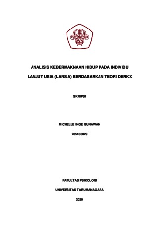 Gunawan, Michelle Inge (2022) Analisis Kebermaknaan Hidup pada Individu Lanjut Usia (Lansia) Berdasarkan Teori Derkx. Skripsi thesis, Universitas Tarumanagara.