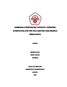Apriani, Irene (2022) Gambaran Parenting Self-Efficacy, Parenting Satisfaction, dan Tipe Pola Asuh Ibu yang Bekerja Penuh Waktu;. Skripsi thesis, Universitas Tarumanagara.