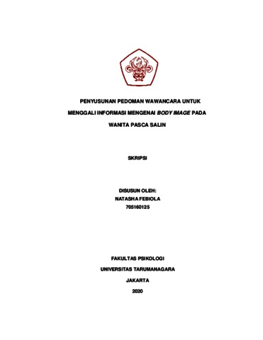 Lewa, Natasha Febiola (2022) Penyusunan pedoman wawancara untuk menggali body image pada wanita pasca salin. Skripsi thesis, Universitas Tarumanagara.