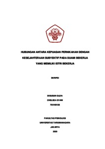 Evani, Chelsea (2022) Hubungan antara Kepuasan Pernikahan dengan Kesejahteraan Subyektif pada Suami Bekerja yang Memiliki Istri Bekerja;. Skripsi thesis, Universitas Tarumanagara.