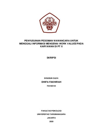 Fakhirah, Dhifa (2022) Penyusunan Pedoman Wawancara untuk Menggali Informasi mengenai Work Values pada Karyawan di PT X. Skripsi thesis, Universitas Tarumanagara.