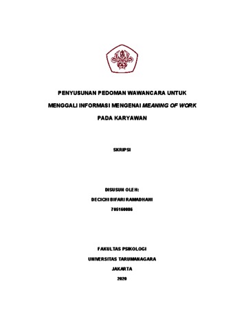 Ramadhani, Decichi Bifari (2022) Penyusunan Pedoman Wawancara untuk Menggali Informasi Mengenai Meaning of Work pada Karyawan;. Skripsi thesis, Universitas Tarumanagara.