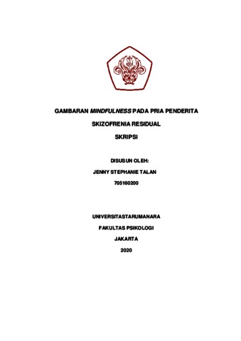 Talan, Jenny Stephanie (2022) Gambaran Mindfulness Pada Pria Penderita Skizofrenia Residual. Skripsi thesis, Universitas Tarumanagara.