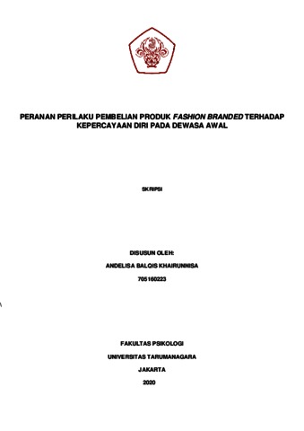 Khairunnisa, Andelisa Balqis (2022) Peranan Perilaku Pembelian Produk Fashion Branded terhadap Kepercayaan Diri pada Dewasa Awal. Skripsi thesis, Universitas Tarumanagara.
