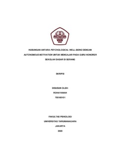 Rohayanah, Rohayanah (2022) Hubungan antara Psychological Well-Being dengan Autonomous Motivation untuk Mengajar pada Guru Honorer di Sekolah Dasar di Serang. Skripsi thesis, Universitas Tarumanagara.