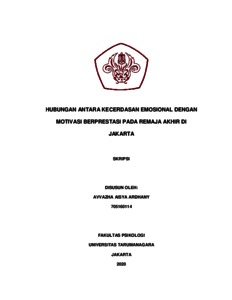 Ardhany, Avvazha Aisya (2022) Hubungan antara Kecerdasan Emosional dengan Motivasi Berprestasi pada Remaja Akhir di Jakarta. Skripsi thesis, Universitas Tarumanagara.