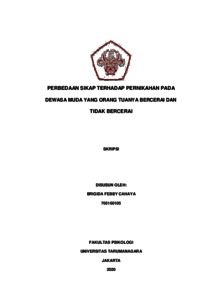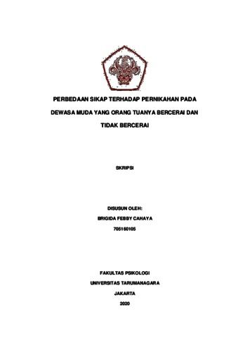 Cahaya, Brigida Febby (2022) Perbedaan Sikap Terhadap Pernikahan pada Dewasa Muda yang Orang Tuanya Bercerai dan Tidak Bercerai. Skripsi thesis, Universitas Tarumanagara.