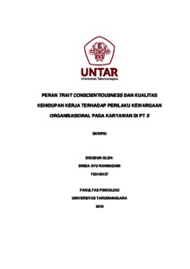 Rahmadani, Dinda Ayu (2022) Peran Trait Conscientiousness dan Kualitas Kehidupan Kerja terhadap Perilaku Kewargaan Organisasional pada Karyawan di PT X. Skripsi thesis, Universitas Tarumanagara.