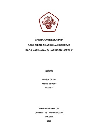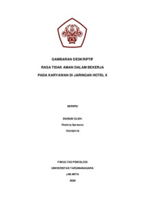 Sarwono, Patricia (2022) Gambaran Deskriptif Rasa Tidak Aman dalam Bekerja Pada Karyawan di Jaringan Hotel X. Skripsi thesis, Universitas Tarumanagara.