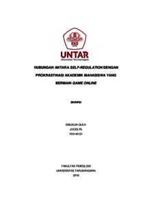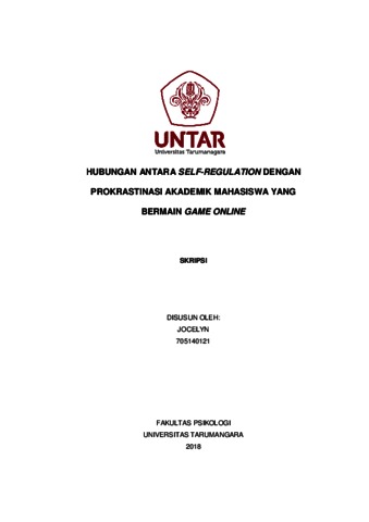 Jocelyn, Jocelyn (2022) Hubungan antara Self-Regulation dengan Prokrastinasi Akademik mahasiswa yang bermain game online. Skripsi thesis, Universitas Tarumanagara.