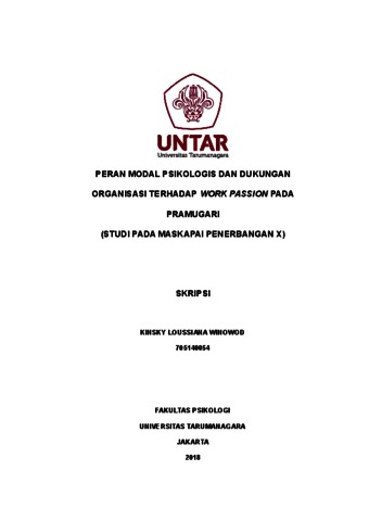 Winowod, Kinsky Loussiana (2022) Peran Modal Psikologis dan Dukungan Organisasi terhadap Work Passion pada Pramugari (Studi pada Maskapai Penerbangan X). Skripsi thesis, Universitas Tarumanagara.