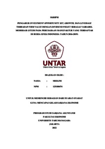 MEILINI, MEILINI (2021) PENGARUH INVESTMENT OPPORTUNITY SET, GROWTH, DAN LEVERAGE TERHADAP FIRM VALUE DENGAN DIVIDEND POLICY SEBAGAI VARIABEL MODERASI (STUDI PADA PERUSAHAAN MANUFAKTUR YANG TERDAFTAR DI BURSA EFEK INDONESIA TAHUN 2016-2019). Skripsi thesis, Universitas Tarumanagara.