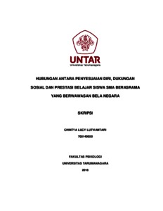Lutviantari, Chintya Lucy (2022) Hubungan antara Penyesuaian Diri, Dukungan Sosial dan Prestasi Belajar pada Siswa SMA Berasrama yang Berwawasan Bela Negara. Skripsi thesis, Universitas Tarumanagara.