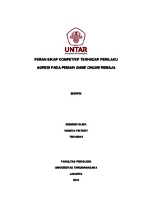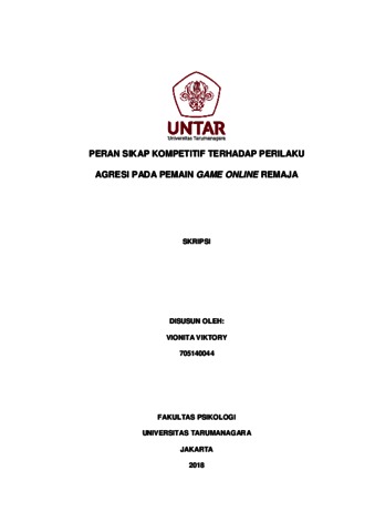 Viktory, Vionita (2022) Peran Sikap Kompetitif Terhadap Perilaku Agresi pada Pemain Game Online Remaja. Skripsi thesis, Universitas Tarumanagara.