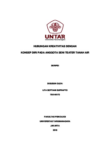 Suprapto, Lita Septiani (2022) Hubungan Kreativitas dengan Konsep Diri pada Anggota Seni Teater. Skripsi thesis, Universitas Tarumanagara.