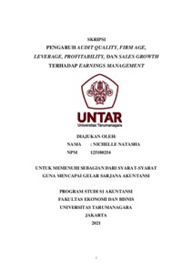 NATASHA, NICHELLE (2021) PENGARUH AUDIT QUALITY, FIRM AGE, LEVERAGE, PROFITABILITY, DAN SALES GROWTH TERHADAP EARNINGS MANAGEMENT. Skripsi thesis, Universitas Tarumanagara.