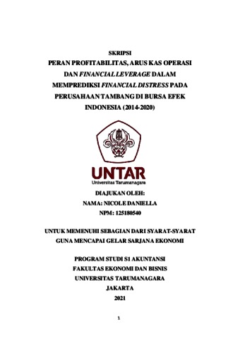 DANIELLA, NICOLE (2021) PENGARUH PROFITABILITAS, ARUS KAS OPERASI, DAN FINANCIAL LEVERAGE TERHADAP FINANCIAL DISTRESS. Skripsi thesis, Universitas Tarumanagara.