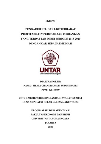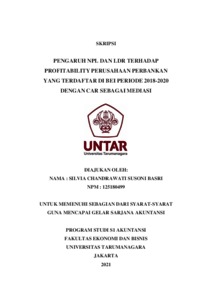BASRI, SILVIA CHANDRAWATI SUSONI (2021) PENGARUH NPL DAN LDR TERHADAP PROFITABILITY PERUSAHAAN PERBANKAN YANG TERDAFTAR DI BEI PERIODE 2018-2020 DENGAN CAR SEBAGAI MEDIASI. Skripsi thesis, Universitas Tarumanagara.