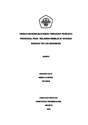 Gabriel, Amadea (2022) Peran Kecerdasan Emosi terhadap Perilaku Prososial pada Relawan Remaja. Skripsi thesis, Universitas Tarumanagara.