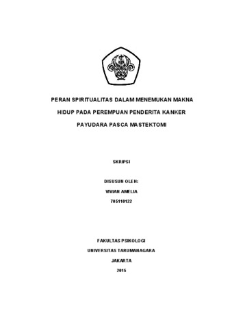 Amelia, Vivian (2022) Peran Spiritualitas dalam Menemukan Makna Hidup pada Perempuan Penderita Kanker Payudara Pasca Mastektomi;. Skripsi thesis, Universitas Tarumanagara.