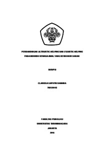 Sambi, Clarissa Saputri Damara (2022) Perbandingan Altruistic Helping dan Egoistic Helping pada Individu Dewasa Awal yang Berdonor Darah. Skripsi thesis, Universitas Tarumanagara.