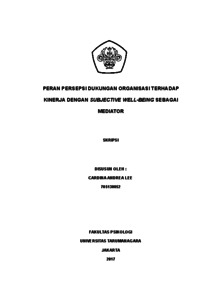 Lee, Cardina Andrea (2022) Peran Persepsi dukungan Organisasi terhadap Kinerja dengan Subjective Well-Being sebagai Mediator. Skripsi thesis, Universitas Tarumanagara.