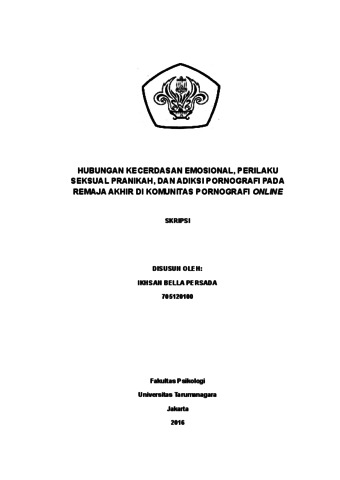 Persada, Ikhsan Bella (2022) Hubungan Kecerdasan Emosional, Perilaku Seksual Pranikah, dan Adiksi Pornografi Pada Remaja Akhir Di Komunitas Pornografi Online. Skripsi thesis, Universitas Tarumanagara.
