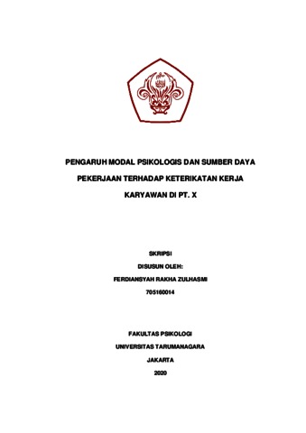 Zulhasmi, Ferdiansyah Rakha (2022) Pengaruh Modal Psikologis dan Sumber Daya Pekerjaan terhadap Keterikatan Kerja pada Karyawan di PT. X. Skripsi thesis, Universitas Tarumanagara.