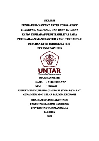 VERONIKA, VERONIKA (2021) PENGARUH AKRUAL, LEVERAGE, DAN ARUS KAS OPERASI TERHADAP PERSISTENSI LABA DENGAN BOOK TAX DIFFERENCE SEBAGAI VARIABEL MODERATING. Skripsi thesis, Universitas Tarumanagara.