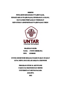 SHERLINA, VINNY (2021) PENGARUH KESADARAN WAJIB PAJAK, PENGETAHUAN WAJIB PAJAK, PENERAPAN E-FILING, DAN SANKSI PERPAJAKAN TERHADAP KEPATUHAN ADMINISTRASI WAJIB PAJAK UMKM. Skripsi thesis, Universitas Tarumanagara.