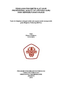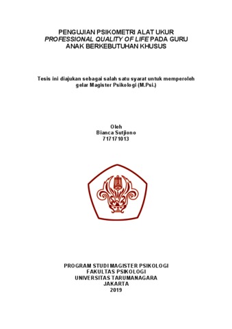 Sutjiono, Bianca (2022) Pengujian Psikometri Alat Ukur Professional Quality of Life pada Guru Anak Berkebutuhan Khusus. Masters thesis, Universitas Tarumanagara.