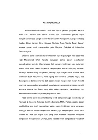 penelitian ini bertujuan untuk melihat peran konflik pekerjaan-keluarga terhadap