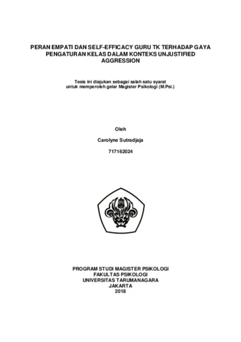 Sutradjaja, Carolyne (2022) Peran Empati dan Self-Efficacy Guru TK terhadap Gaya Pengaturan Kelas dalam Konteks Unjustified Aggression. Masters thesis, Universitas Tarumanagara.