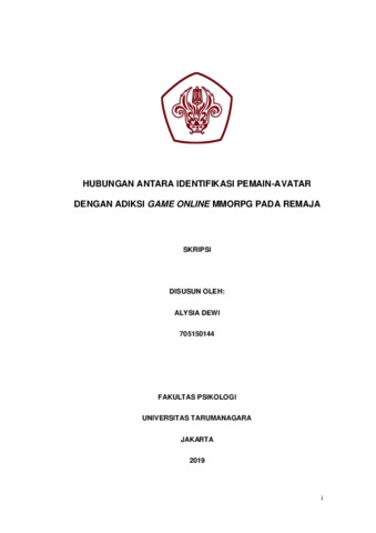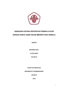 Dewi, Alysia (2022) HUBUNGAN ANTARA IDENTIFIKASI PEMAIN-AVATAR DENGAN ADIKSI GAME ONLINE MMORPG PADA REMAJA. Skripsi thesis, Universitas Tarumanagara.