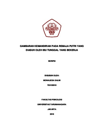 Salim, Monaliesa (2022) Gambaran Kemandirian Remaja Putri yang Diasuh Oleh Ibu Tunggal yang Bekerja. Skripsi thesis, Universitas Tarumanagara.