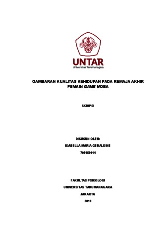 Geraldine, Isabella Maria (2022) Gambaran Kualitas Kehidupan pada Remaja Akhir Pemain Game MOBA. Skripsi thesis, Universitas Tarumanagara.