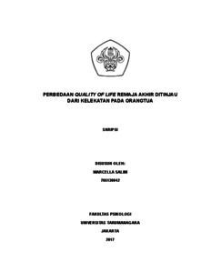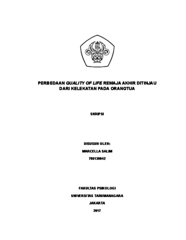 Salim, Marcella (2022) Perbedaan Quality of Life Remaja Akhir Ditinjau dari Kelekatan Pada Orangtua. Skripsi thesis, Universitas Tarumanagara.