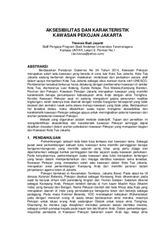 Jayanti, Theresia Budi (2016) AKSESIBILTAS DAN KARAKTERISTIK KAWASAN PEKOJAN JAKARTA. Karya Ilmiah Dosen.