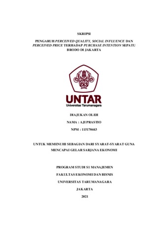 PRASTIO, AJI (2021) PENGARUH PERCEIVED QUALITY, SOCIAL INFLUENCE DAN PERCEIVED PRICE TERHADAP PURCHASE INTENTION SEPATU BRODO DI JAKARTA. Skripsi thesis, Universitas Tarumanagara.