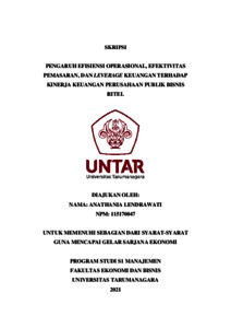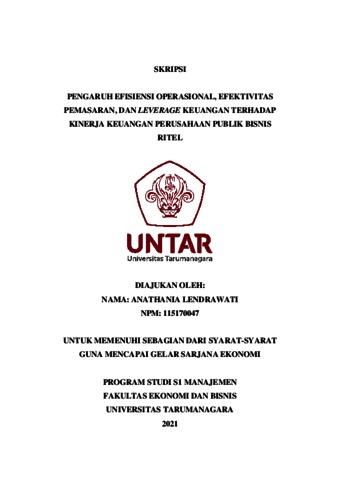 LENDRAWATI, ANATHANIA (2021) PENGARUH EFISIENSI OPERASIONAL, EFEKTIVITAS PEMASARAN, DAN LEVERAGE KEUANGAN TERHADAP KINERJA KEUANGAN PERUSAHAAN PUBLIK BISNIS RITEL. Skripsi thesis, Universitas Tarumanagara.