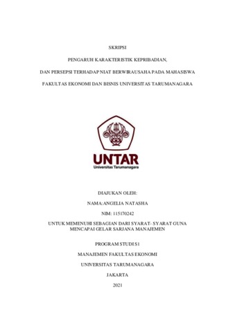 Kata Kunci : Niat Berwirausaha, Karakteristik Kepribadian, Persepsi