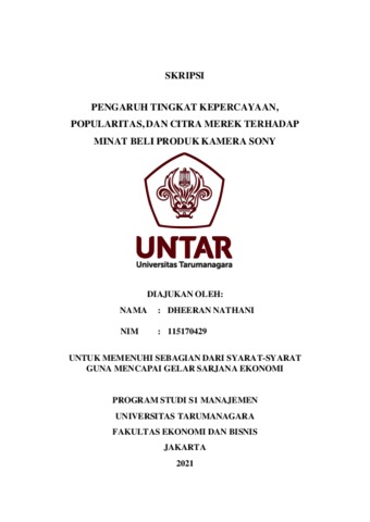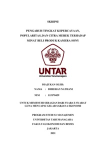 NATHANI, DHEERAN (2021) PENGARUH TINGKAT KEPERCAYAAN, POPULARITAS, DAN CITRA MEREK TERHADAP MINAT BELI PRODUK KAMERA SONY. Skripsi thesis, Universitas Tarumanagara.